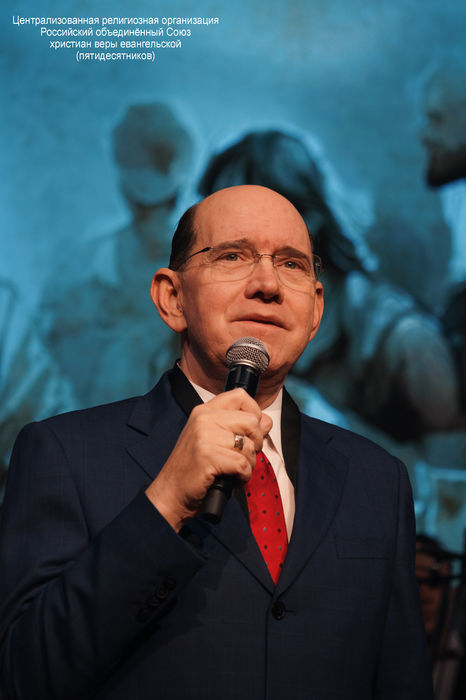 После молитвы и песнопений поприветствовал гостей президент телеканалов ТБВ и GNC, епископ Рик Реннер, гостеприимно принявший Собор в стенах московской церкви «Благая весть»*.