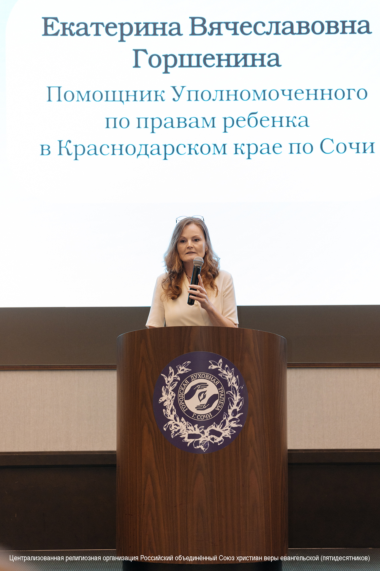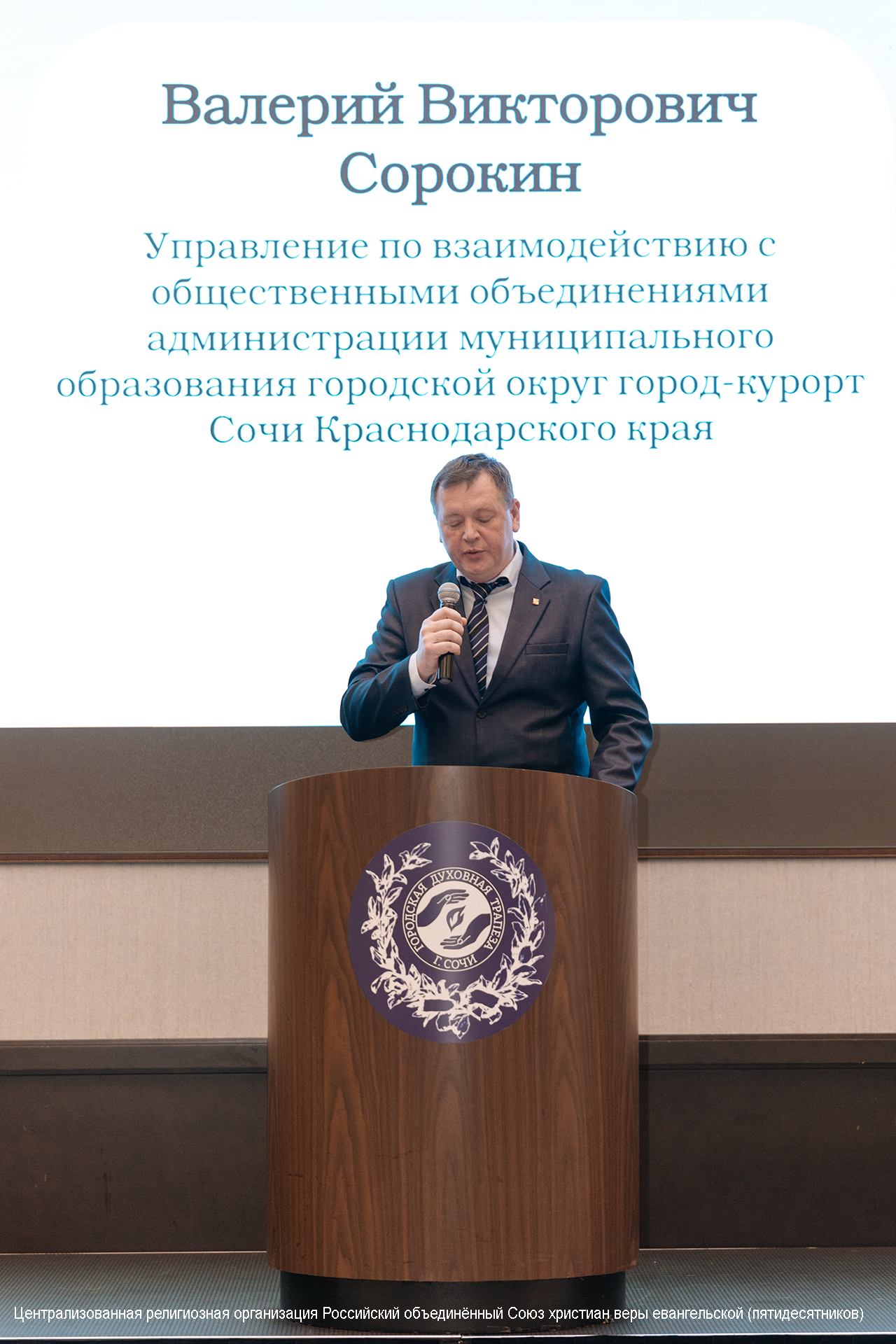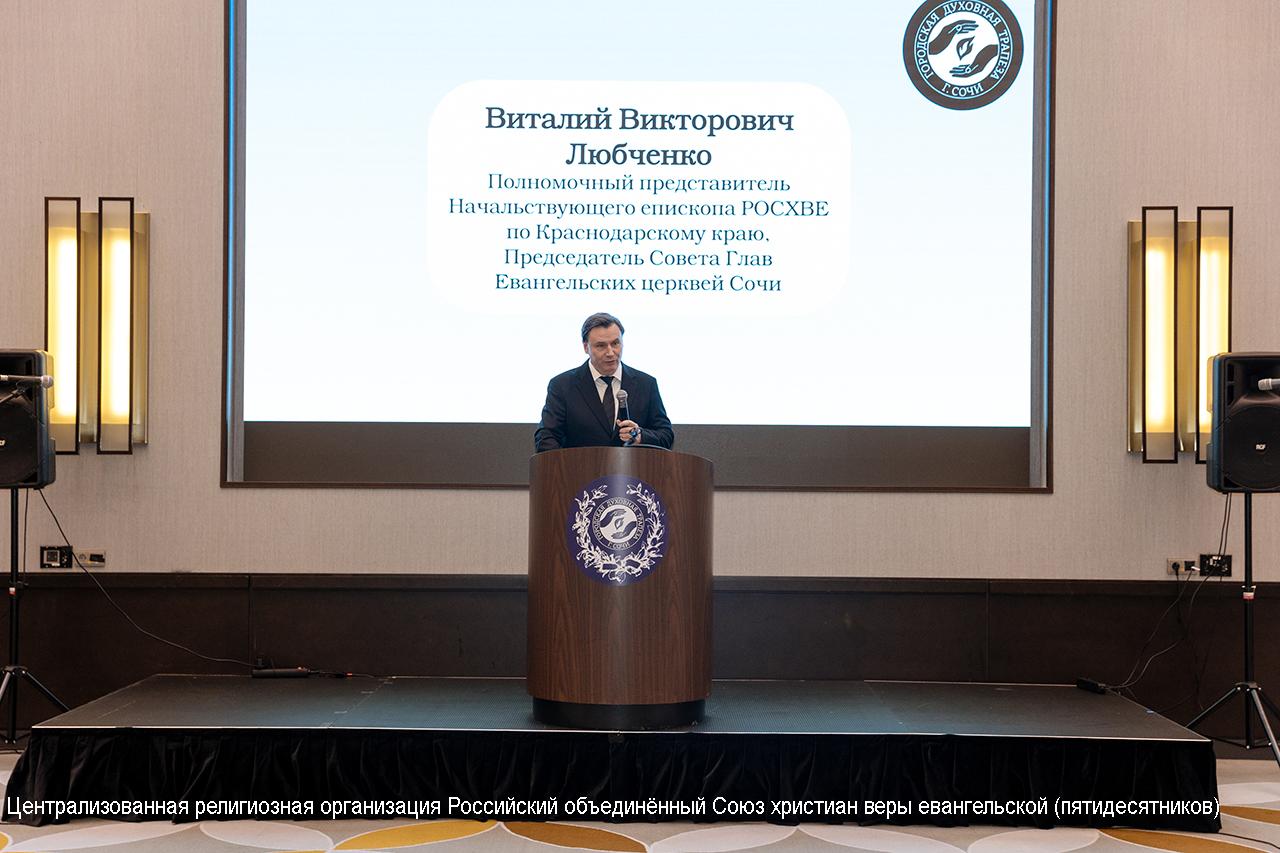 Полномочный представитель Начальствующего епископа РОСХВЕ(п) по Краснодарскому краю и председатель Совета глав протестантских церквей Сочи Виталий Любченко представил ежегодный доклад о социальной и общественной работе церквей. Среди ключевых инициатив он выделил проект «Родительское собрание», направленный на профилактику зависимостей среди молодёжи, уникальный всероссийский футбольный турнир для верующих семей «Отцы и дети», а также системную помощь участникам специальной военной операции и их семьям. В рамках межконфессионального сотрудничества спикер предложил городскому сообществу проект, приуроченный к 150-летию Синодального перевода Библии.