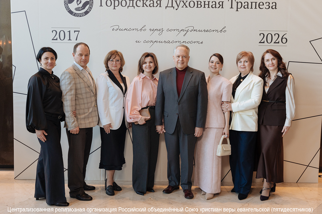 16 апреля 2026 года в конгресс-центре Grand Karat Sochi состоялась VII Городская Духовная Трапеза. Мероприятие, организованное Советом глав Евангельских (протестантских) церквей города Сочи при поддержке Российского объединённого Союза христиан веры евангельской (пятидесятников) и Фонда содействия возрождению духовности «Национальная Духовная Трапеза», собрало около 70 представителей власти, бизнеса, культуры и религиозных объединений.