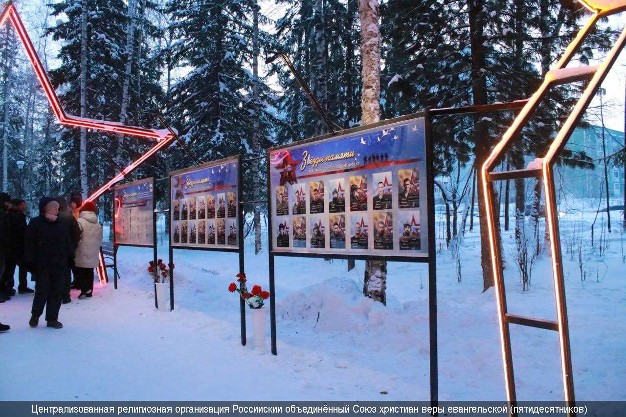 14 декабря 2025 года в Усть-Илимске на Аллее Славы по инициативе АНО «СоДействие»*, являющегося одним из направлений социального служения церкви «Новое время» г. Усть-Илимск**, состоялось торжественное открытие мемориального комплекса «Звезды Памяти», посвященного жителям города, погибшим в ходе специальной военной операции.