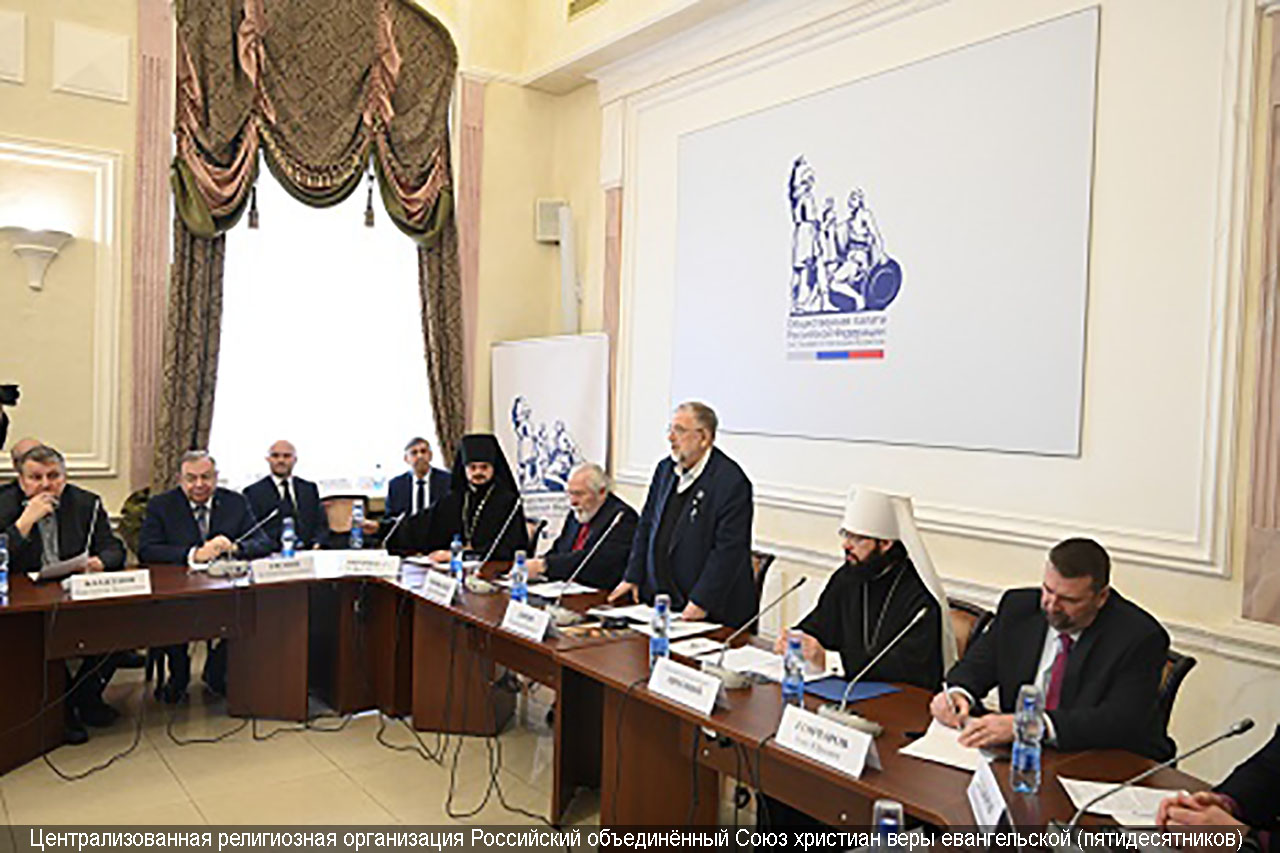 Модераторами выступили глава Комиссии ОП РФ по межнациональным, межрелигиозным отношениям и миграции В.Ю. Зорин и член Совета при Президенте России по взаимодействию с религиозными объединениями, начальствующий епископ Централизованной религиозной организации Российский объединённый Союз христиан веры евангельской (пятидесятников) С.В. Ряховский.