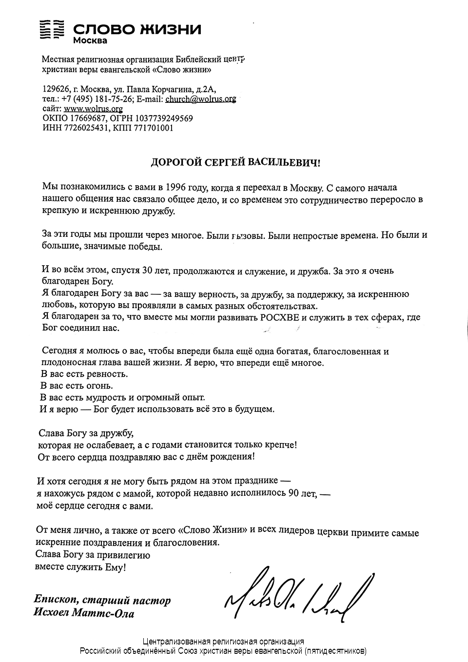 Во Христе — наша вера, а наша миссия — нести живое Слово о Нём в самое сердце общества. Наша сила — в вере, которая вдохновляет на служение, объединяет в многообразии и даёт силы быть ответом на вызовы времени, утверждая подлинные ценности Евангелия в жизни каждого человека и всей нашей страны.