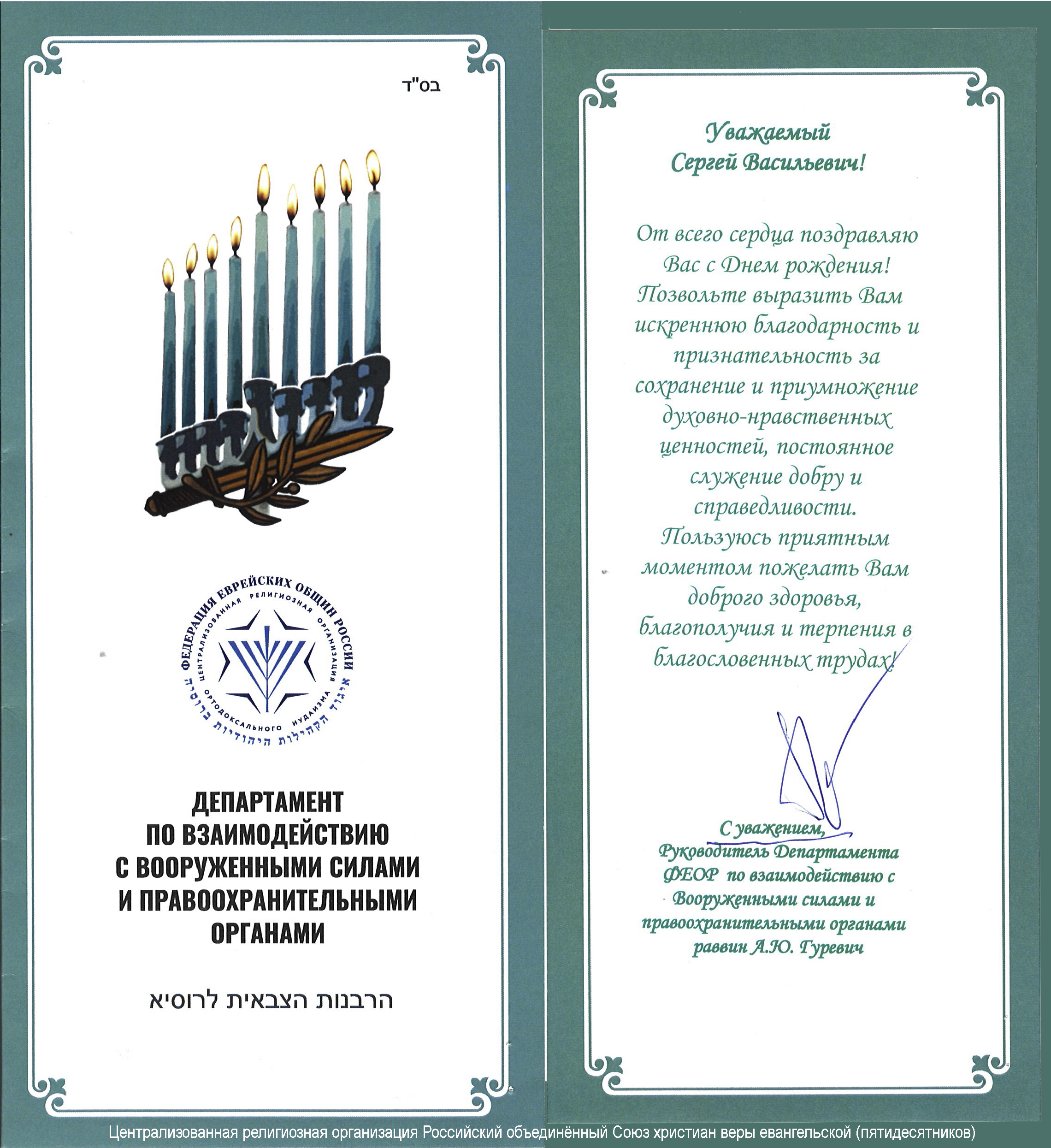 Главная / Инфопортал / Поздравления / Руководитель Департамента ФЕОР А.Ю. Гуревич поздравил епископа С.В. Ряховского с днём рождения