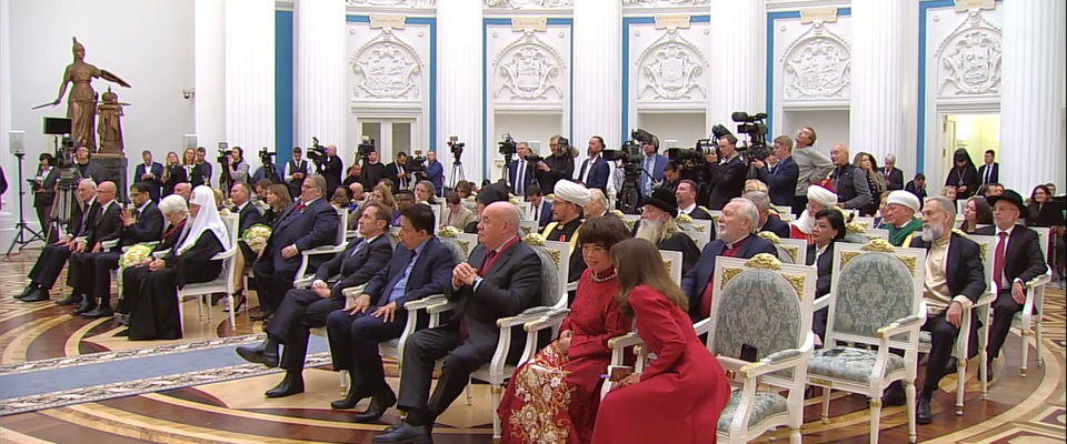 Всего государственные награды - ордена, медали, почетные грамоты и благодарности - получили более 30 человек. Среди них, в частности - глава Буддийской традиционной сангхи России Дамба Аюшеев, верховный муфтий, председатель Центрального духовного управления мусульман России Талгат Сафа Таджуддин, глава Духовного собрания мусульман России, муфтий Альбир Крганов.