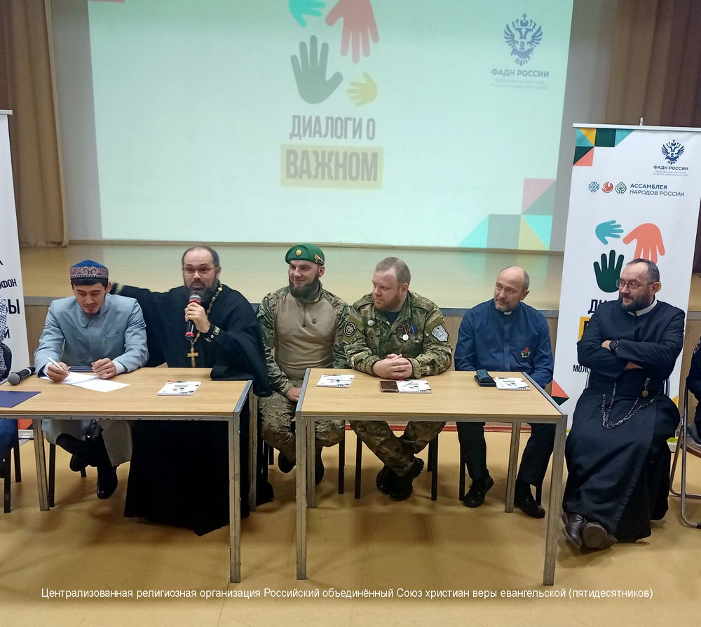 Вместе с пастором в открытом диалоге со студентами города участвовали представители других конфессий и общественных объединений: председатель Центра татарской культуры «ДУСЛЫК»** Тимур Галеев; священник кафедрального собора Рождества Иоанна Предтечи г. Юрги***, иерей Евгений Довгаль; имам города Юрги Жуманазар хазрат Умаров; настоятель Прихода Святого Духа Римско-Католической Церкви**** Павел Юрковски, а также представители Ассоциации ветеранов СВО г. Юрги Павел Калинин и Александр Торгунаков.