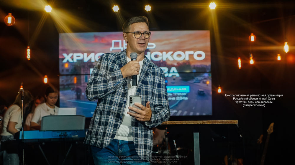 Открыл мероприятие Полномочный представитель Начальствующего епископа РОСХВЕ(п) в Республике Алтай, председатель Совета Христианских Церквей Бийска, пастор церкви «Рема» Андрей Метла. В своем приветствии он отметил: «Сегодняшний государственный праздник напоминает нам о ценности единства. Мы собрались как одна семья перед Богом, с общей ответственностью за наш город. Наша сила — в единстве, а наша миссия — нести добро и свет каждому жителю Бийска».
